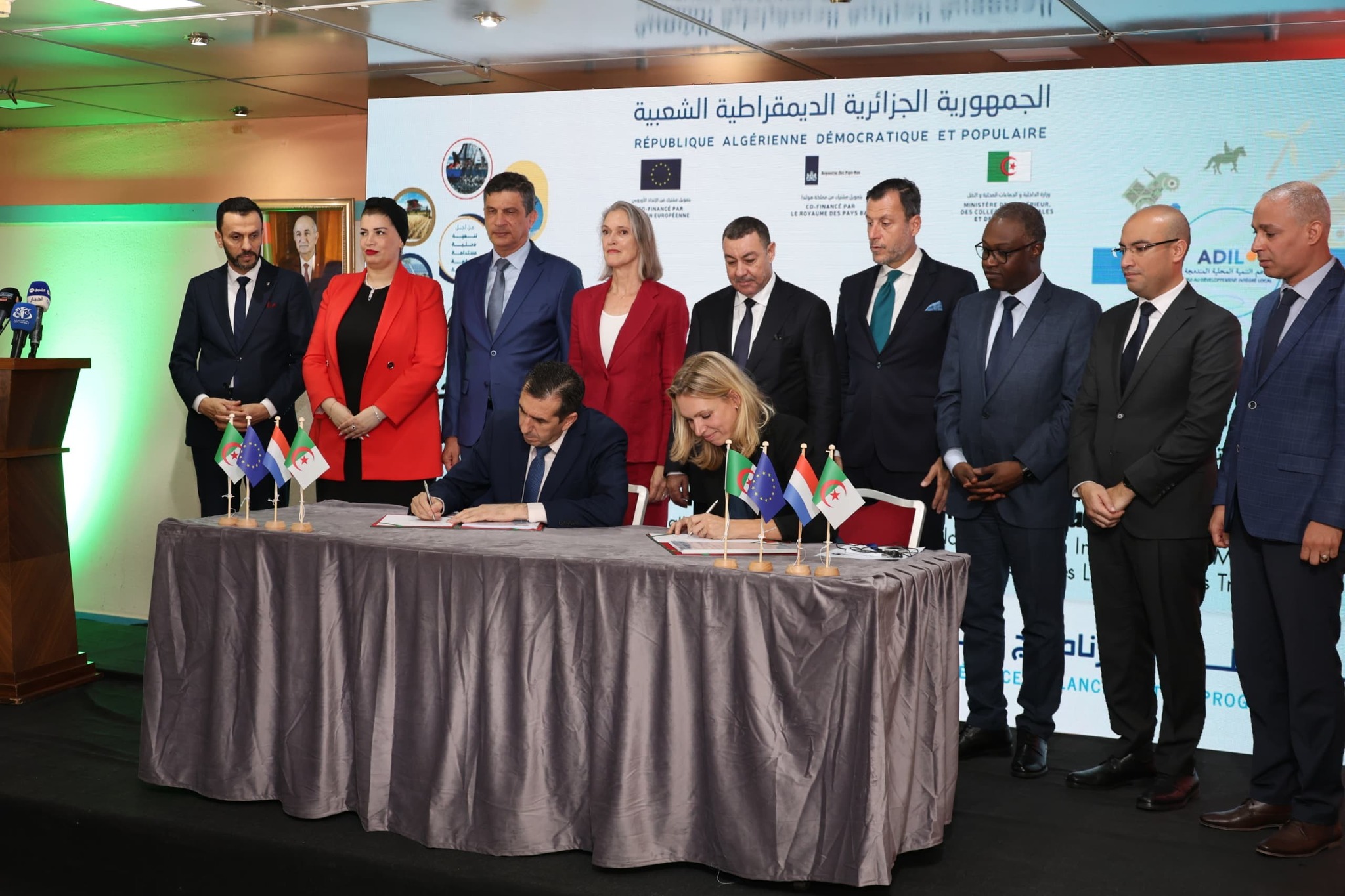 وبحضور أعضاء من الطاقم الحكومي و ولاة الجمهورية, وممثلي هيئات رسمية, وكذا سفيري الاتحاد الأوروبي وهولندا بالجزائر, تم التوقيع الرسمي على وثيقة البرنامج من قبل ممثل وزارة الداخلية والجماعات المحلية والنقل, كمال كايلي, ونائبة مدير رابطة البلديات الهولندية, رينسكي ستينبيرجين.
